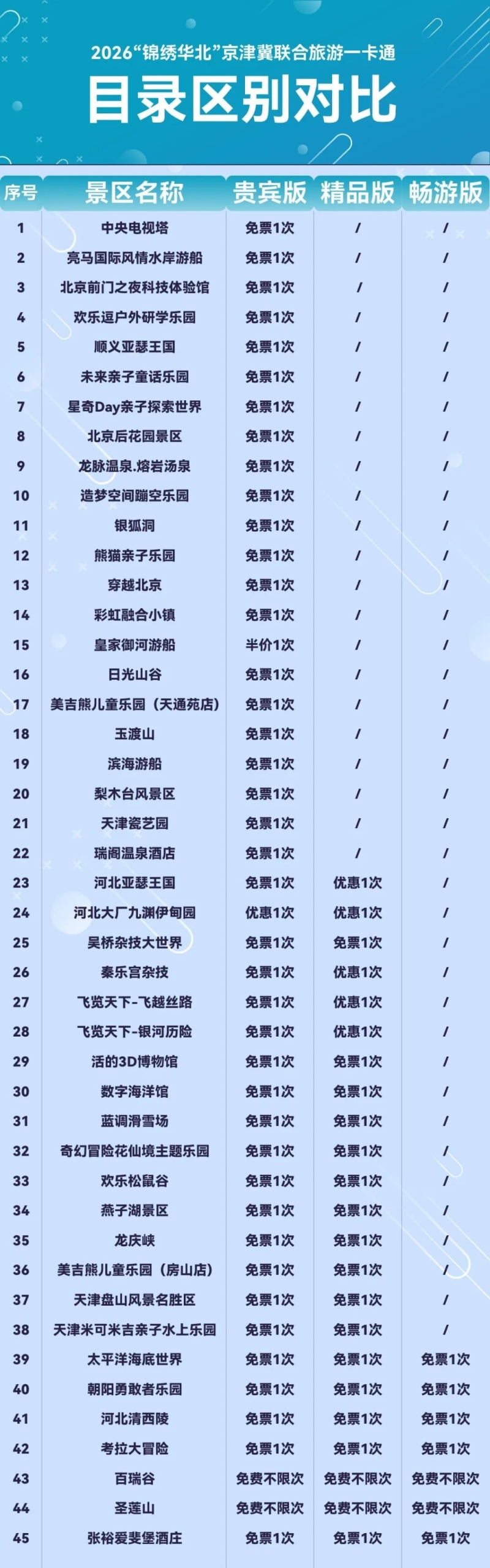 2026年“锦绣华北”京津冀联合一卡通精品版景区目录 | ||||